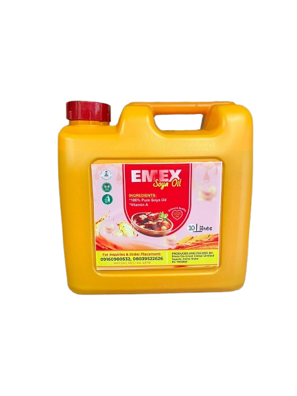 Emex soya oil  is a premium quality oil made from pure and natural ingredients grown on African soil. it is extracted from carefully cultivated soya beans and it is rich in omega-3, fatty acids and also fortified with vitamin A. Emex soya oil has zero cholesterol; which is good and healthy for your family.